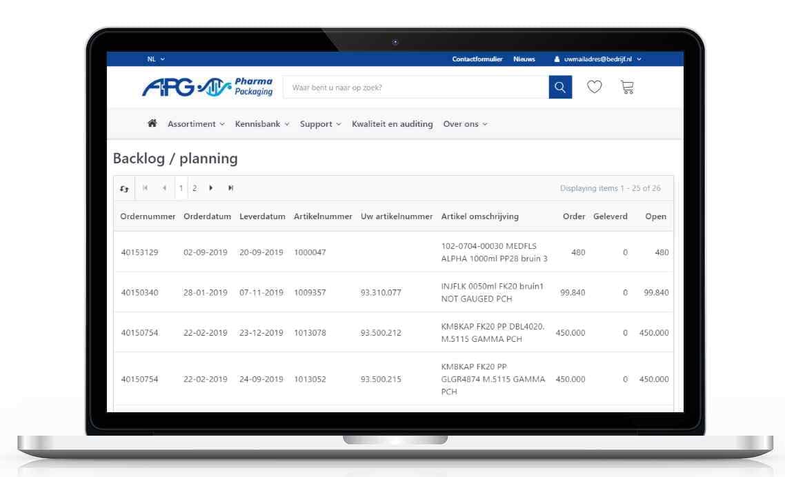 Eén overzicht van specifieke artikelen met uw klantspecifieke prijzen en bijbehorende informatie, zoals: